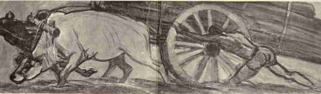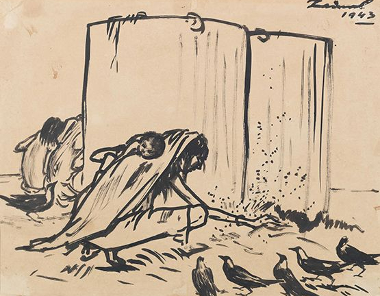 In 1943, when Bengal was struck by one of the worst famines in its history, Zainul’s art took on a new urgency. The famine had left millions of people starving, their bodies reduced to fragile shells, and Zainul could not turn away from this reality. His Famine Series is a reflection of his deep empathy for the suffering he witnessed. He used ink on paper to depict skeletal figures, capturing the desperation and helplessness of a people caught in the jaws of hunger. His strokes were quick, spare, and unflinching, creating images that haunt long after they are seen.