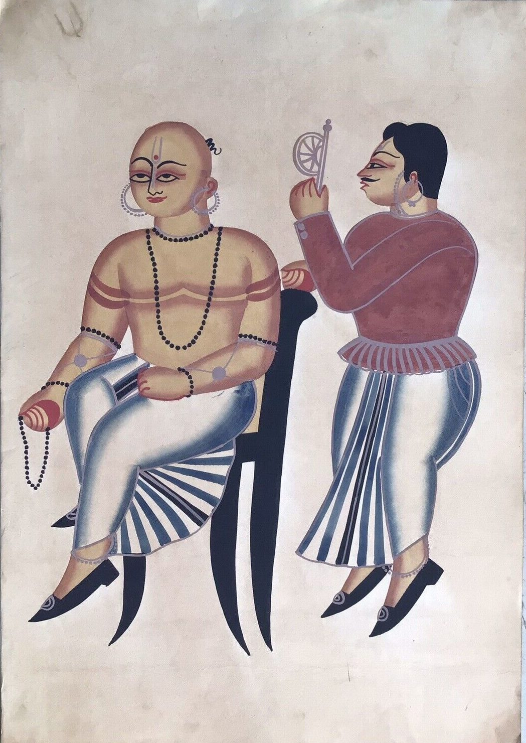 In a society where virtue was loudly proclaimed and rarely practiced, the Kalighat artists acted as satirists wielding brushes instead of pens. Take, for instance, their portrayal of the so-called holy men — the sadhus and ascetics who roamed the streets of Calcutta with a facade of piety.