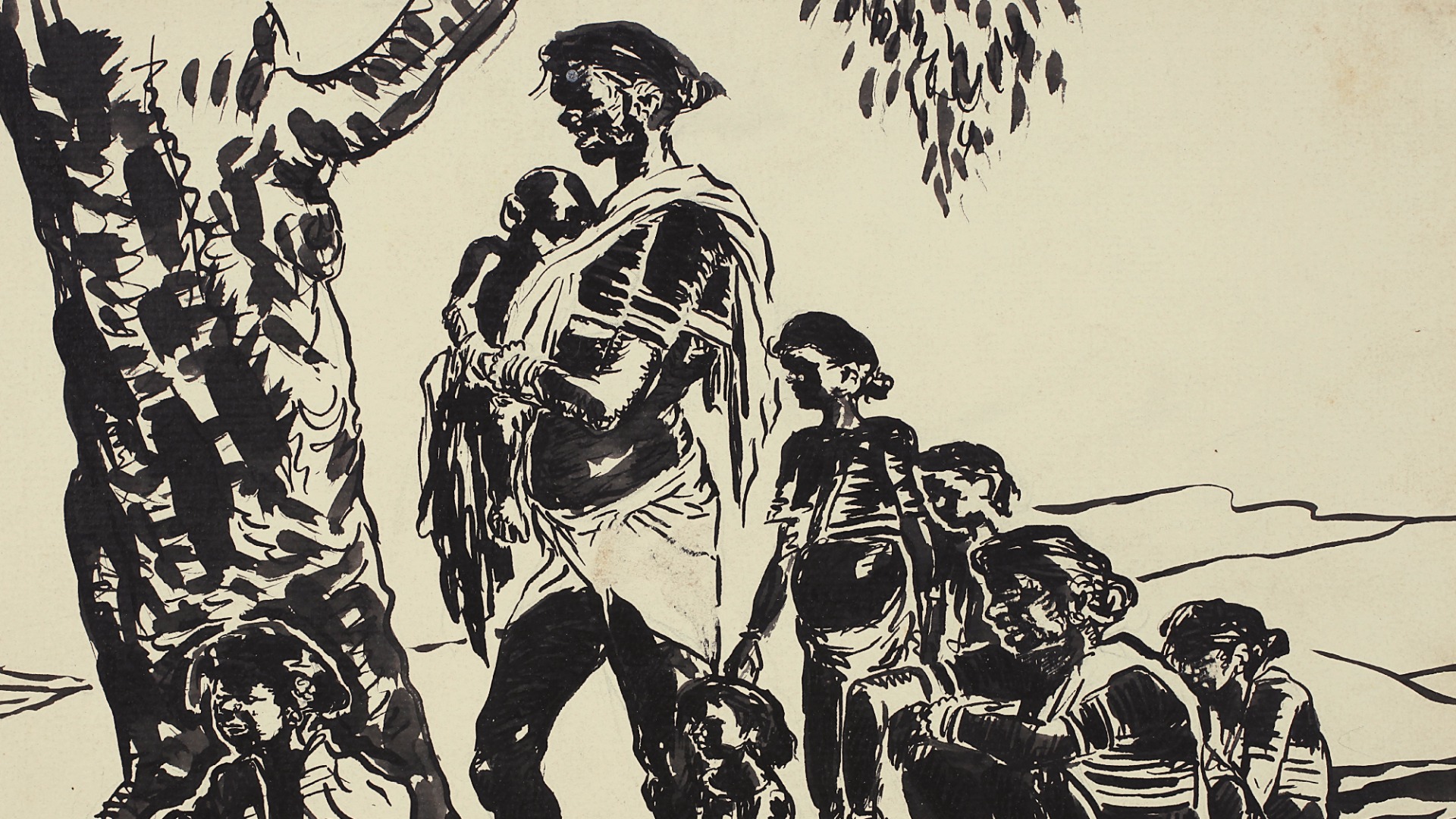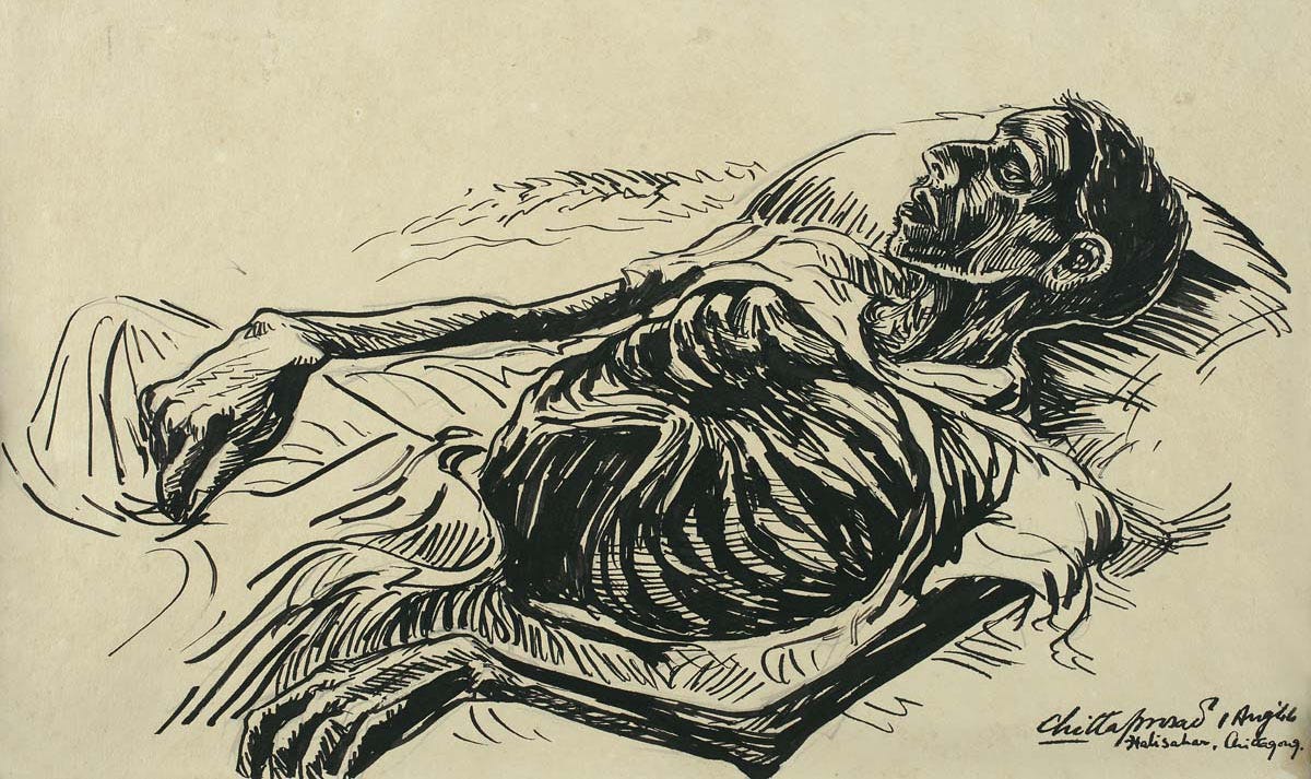 His series of sketches, later compiled in the publication Hungry Bengal, remains one of the most unvarnished accounts of the famine. In these images, the human form is stripped bare — not just by hunger but by the indignities of neglect and abandonment.